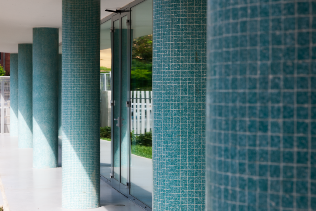 Il progetto attuale ha ripristinato porticati, facciate e dettagli architettonici come i pilastri in mosaico e i solai rastremati, restituendo chiarezza all’impianto originario. L’intervento si configura come un restauro esemplare del moderno, fedele alla visione e alla poetica architettonica di Cosenza.