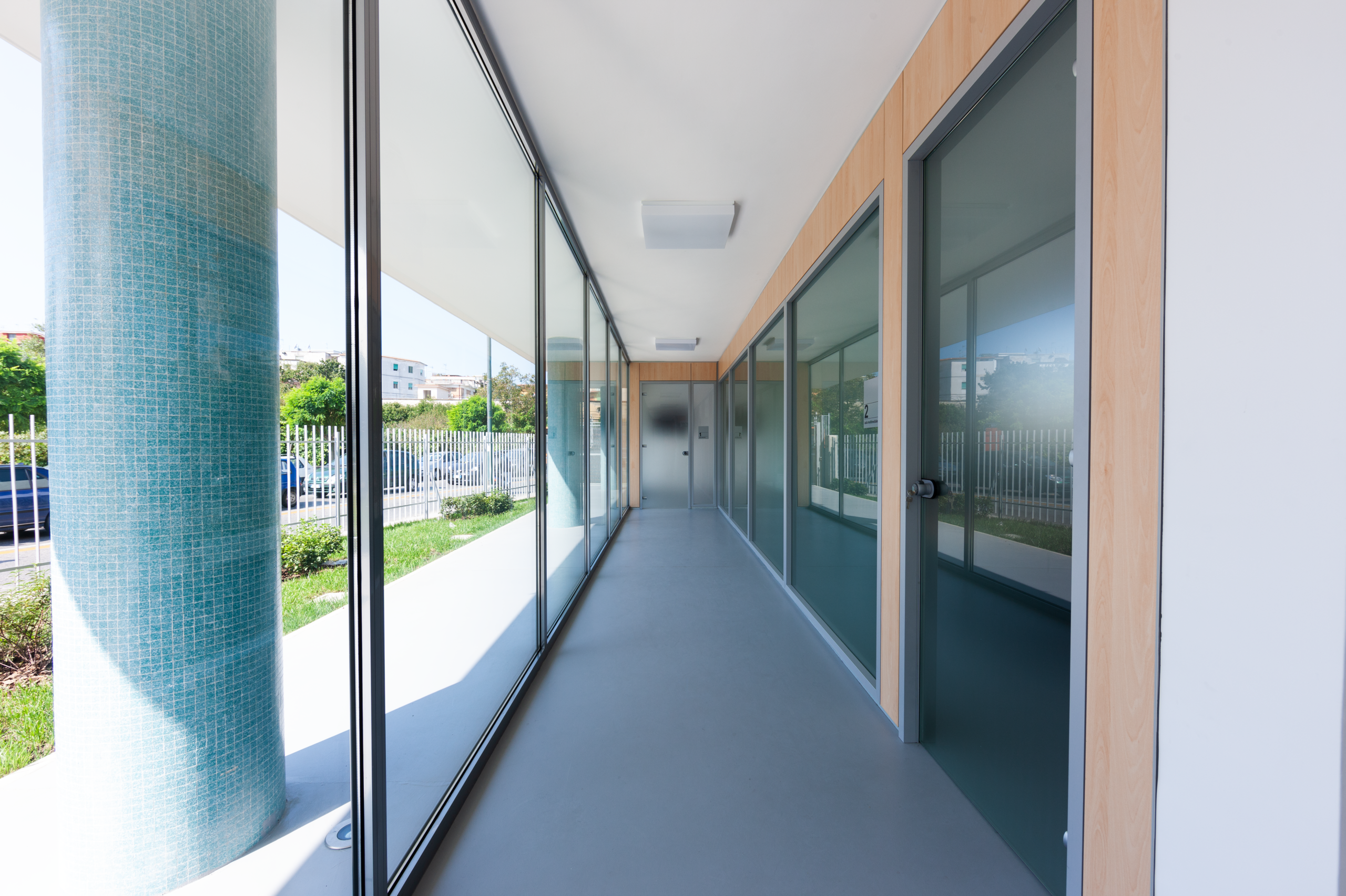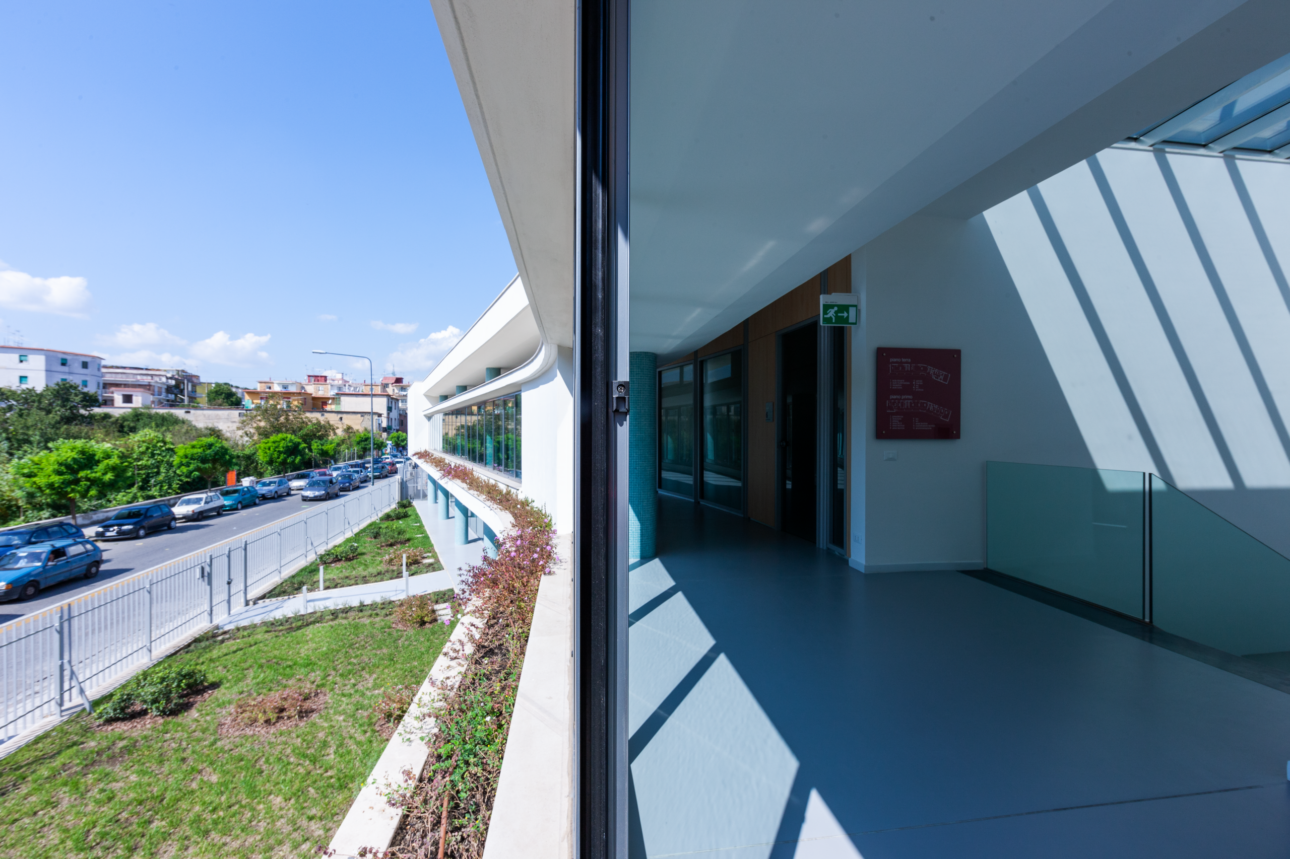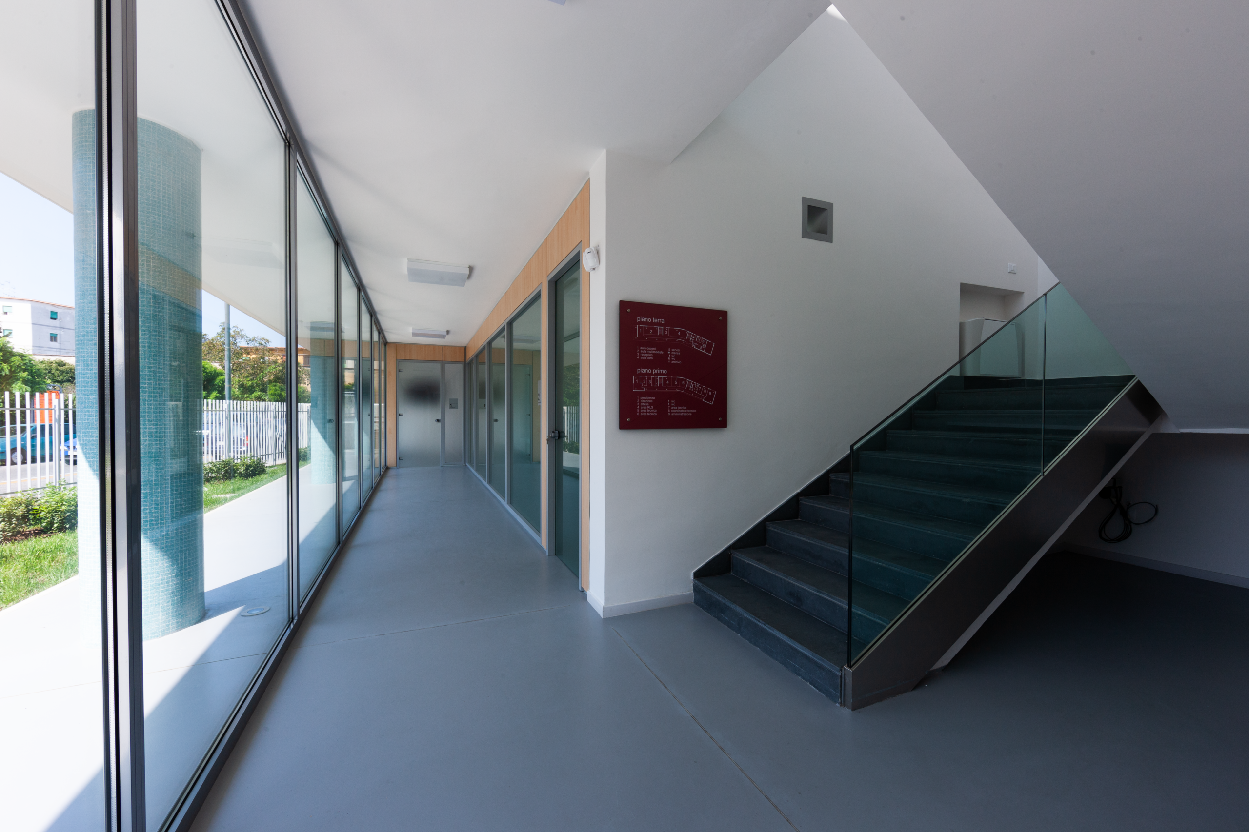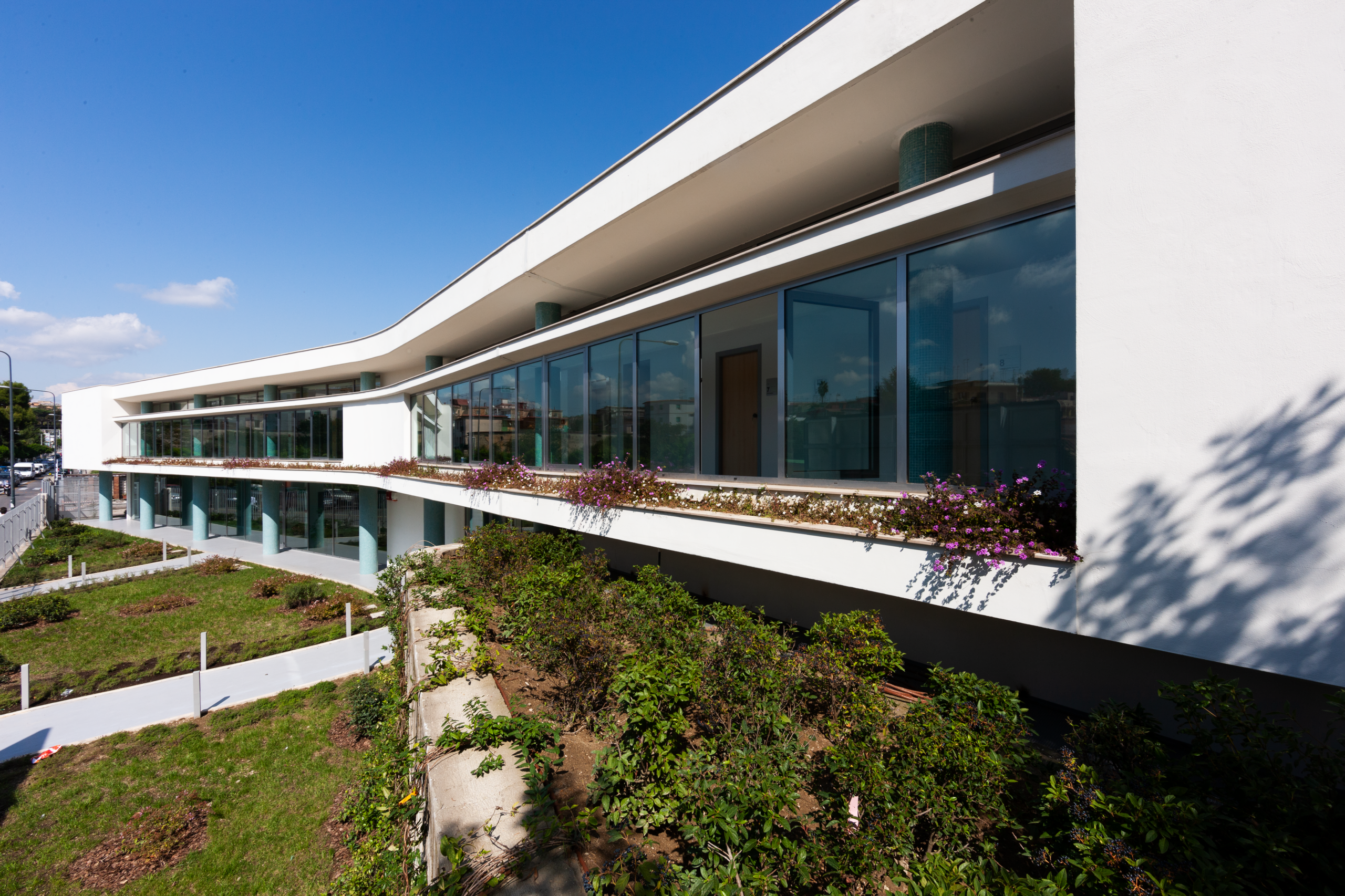 L’edificio, opera di Luigi Cosenza degli anni ’50, è stato restaurato recuperando la volumetria e le finiture originarie, rimuovendo le alterazioni successive. Era parte di un più ampio polo formativo mai realizzato, ispirato al complesso Olivetti di Arco Felice.