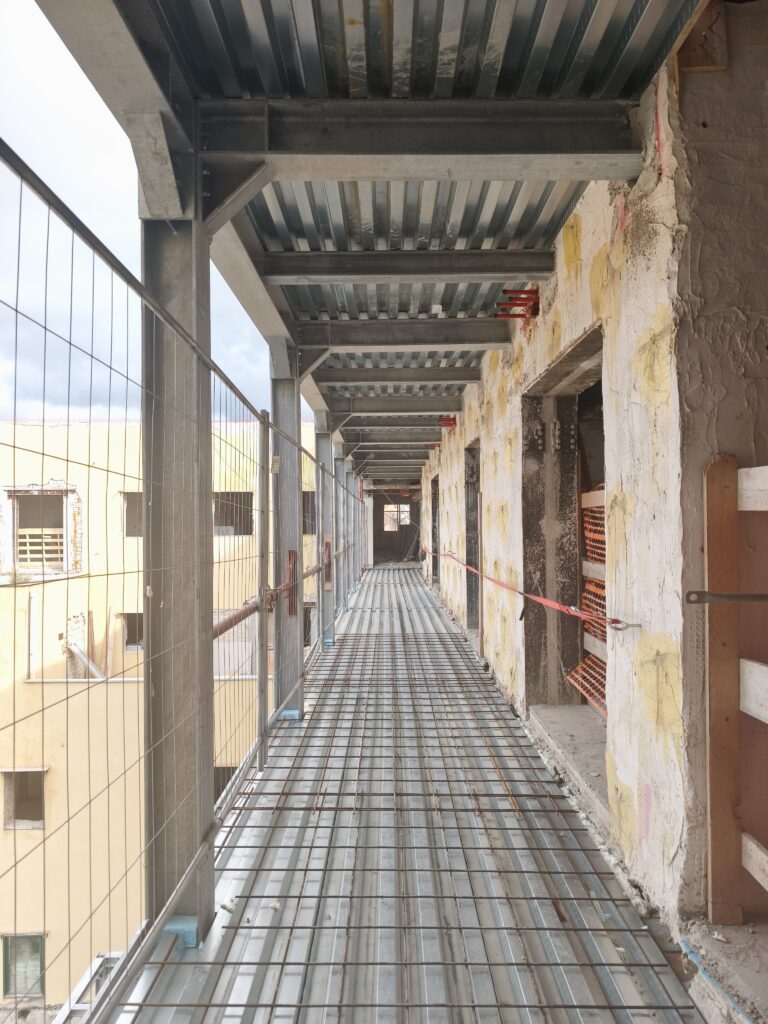 Sono state realizzate 138 camere (114 singole e 24 doppie) e numerose aree comuni, tra cui spazi studio e coworking, palestra, bar-ristoro e ambienti dedicati alla preparazione e consumazione dei pasti, favorendo socialità e comfort.