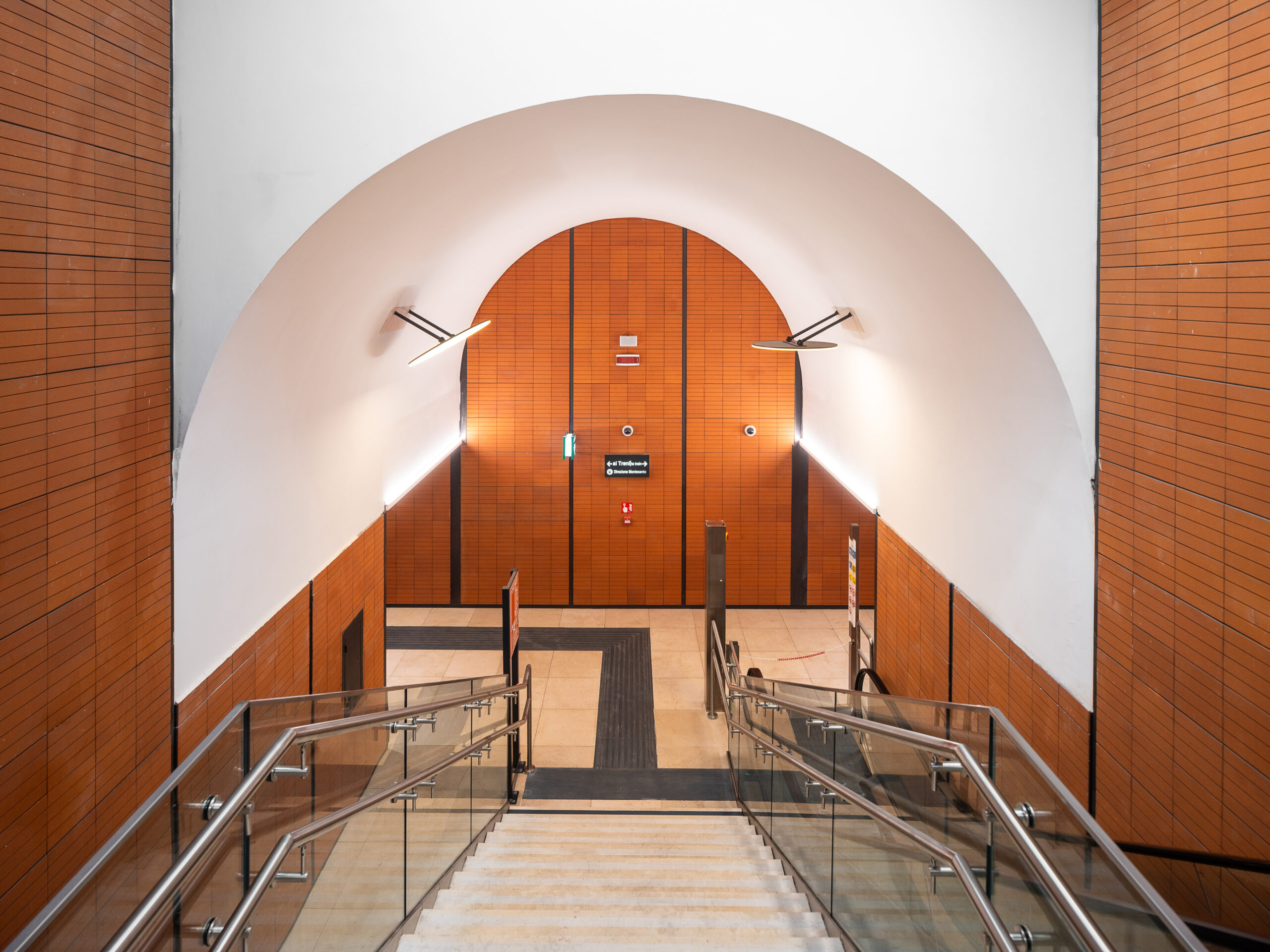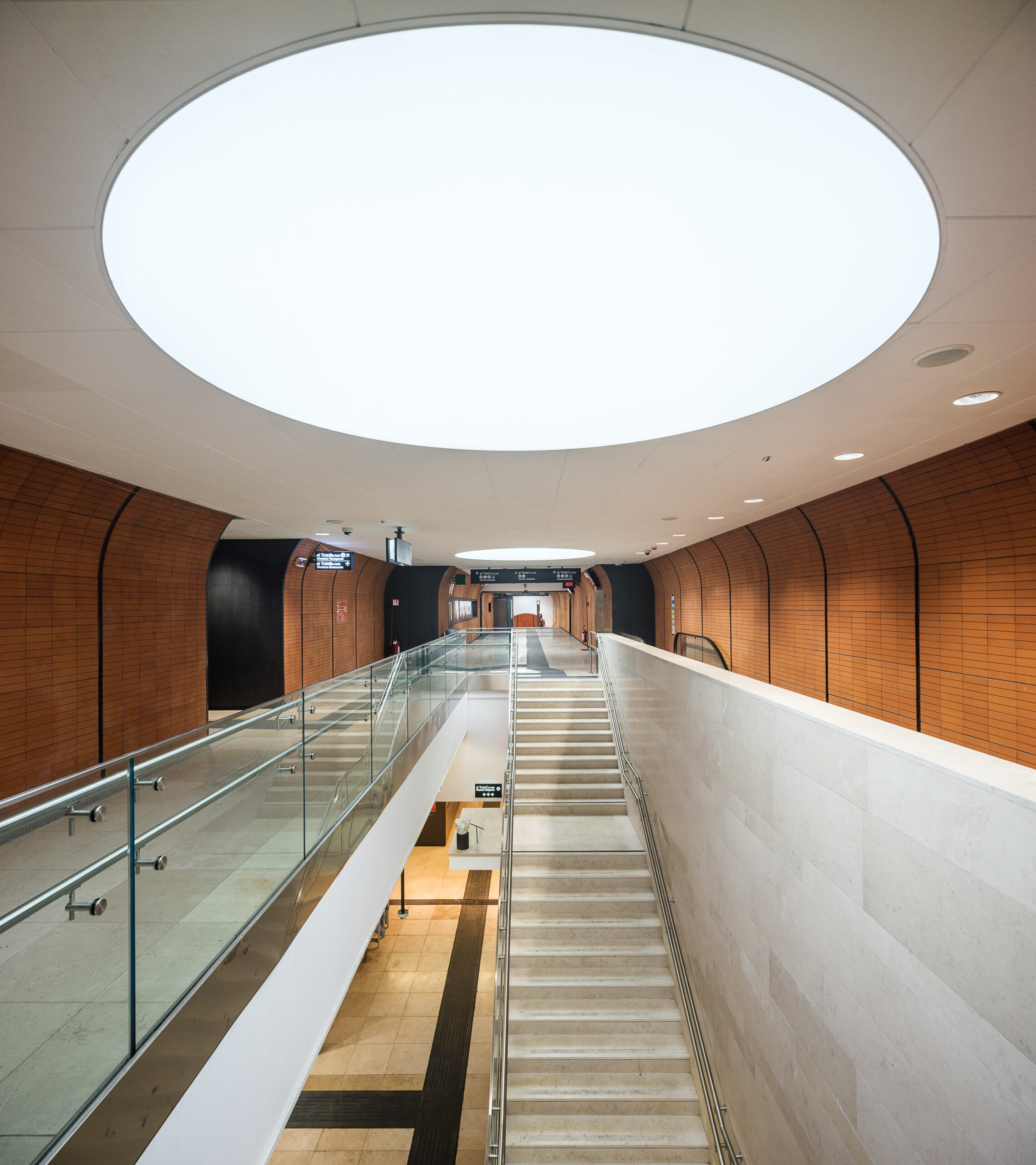 L’attuale intervento affonda le radici nei primi anni Duemila, quando la linea Cumana, gestita da EAV, avviò un programma di ammodernamento. La vecchia stazione di Baia, inaugurata nel 1890 e situata in superficie, fu dismessa nel 1999 per consentire la realizzazione del nuovo tracciato interrato. Tra il 2004 e il 2007 furono sviluppati i progetti preliminare, definitivo ed esecutivo della nuova stazione: un complesso sotterraneo di circa 2.800 mq, articolato su più livelli e concepito per dialogare con la materia e la luce del luogo. Dopo l’avvio dei lavori, il cantiere subì però una lunga sospensione. Solo nel 2023 il progetto è stato riattivato e aggiornato attraverso una variante, che ha ridefinito gli accessi, migliorato la connessione con il centro urbano e valorizzato l’ambito esterno. L’intervento di od’a – Officina d’Architettura si fonda su un equilibrio tra memoria, funzionalità e paesaggio. Il tema principale è quello dell’integrazione: tra architettura e terreno vulcanico, tra nuova infrastruttura e preesistenze archeologiche, tra mobilità ferroviaria e percorsi pedonali e ciclabili, ma anche tra esperienza del viaggio e scoperta culturale. L’edificio si caratterizza per volumi semplici e per l’uso di materiali legati alla tradizione locale, come tufo, pietra, travertino, mattoni e calcestruzzo pigmentato. Fondamentale è il ruolo della luce naturale: ampi lucernari circolari perforano la copertura e illuminano gli spazi sotterranei, rendendoli accoglienti e percettivamente dinamici. Il riferimento all’architettura termale romana è evidente, in particolare al tempio di Mercurio di Baia, evocato nella relazione tra luce, spazio e materia.